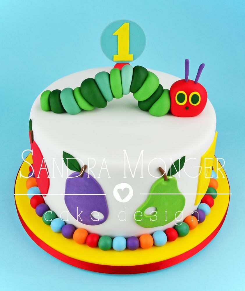 Childrens birthday cake, hungry caterpillar, fruits, bright colours