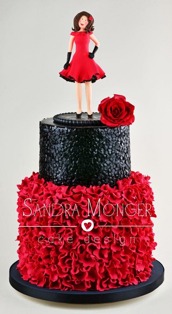 sugar black sequins, red sugar ruffles, lady in red, red rose